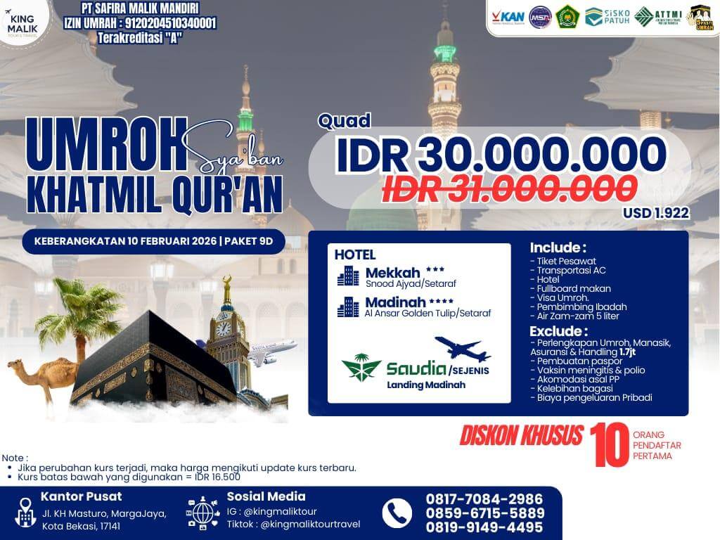 - Harga dapat berubah sewaktu-waktu sesuai dengan Kurs Dollar terhadap rupiah dan/atau berdasarkan kebijakan pemerintah Arab dan Indonesia