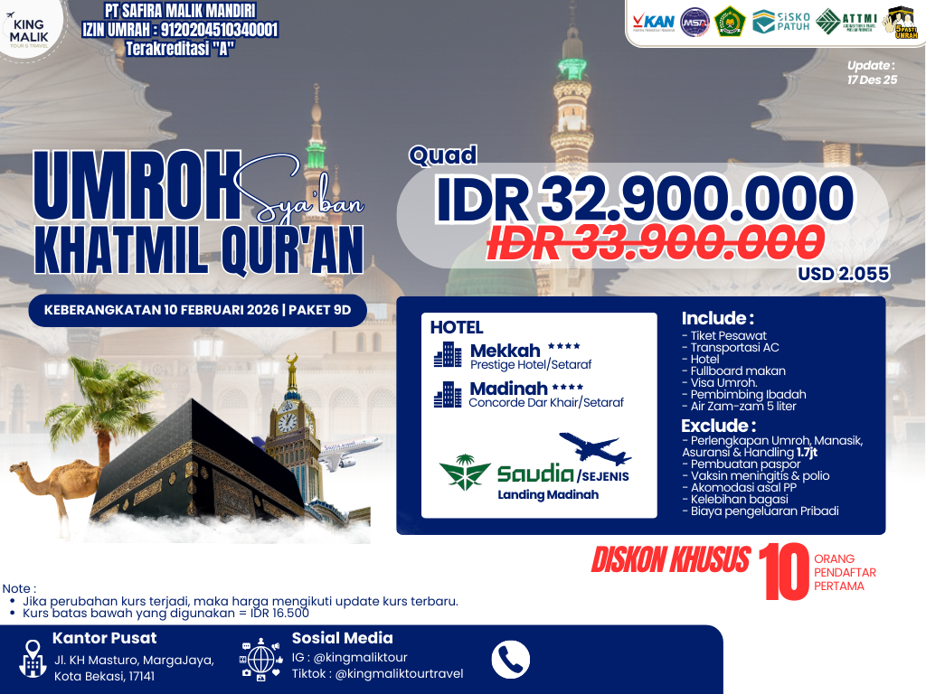 - Harga dapat berubah sewaktu-waktu sesuai dengan Kurs Dollar terhadap rupiah dan/atau berdasarkan kebijakan pemerintah Arab dan Indonesia