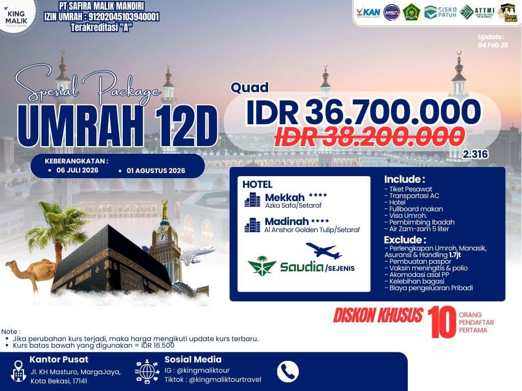 - Harga dapat berubah sewaktu-waktu sesuai dengan Kurs Dollar terhadap rupiah dan/atau berdasarkan kebijakan pemerintah Arab dan Indonesia