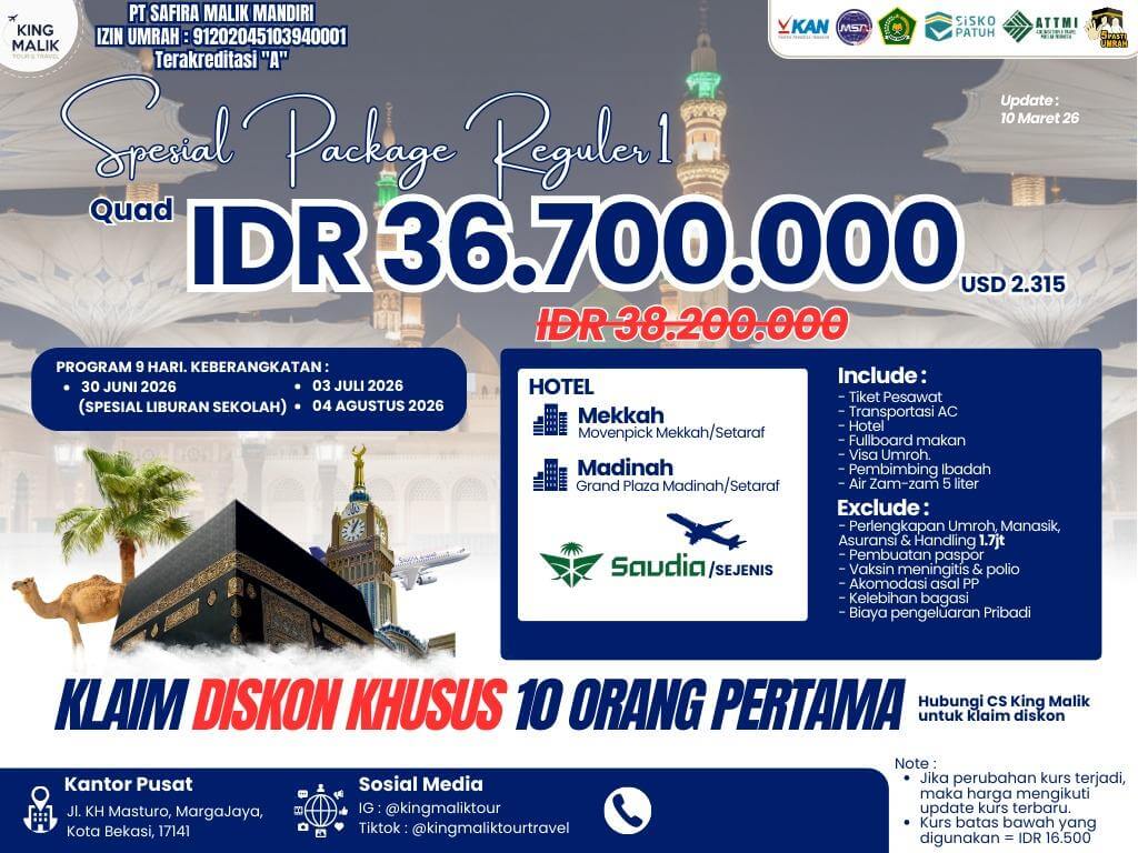 SPESIAL PACKAGE REGULER UMRAH 9D LIBURAN SEKOLAH