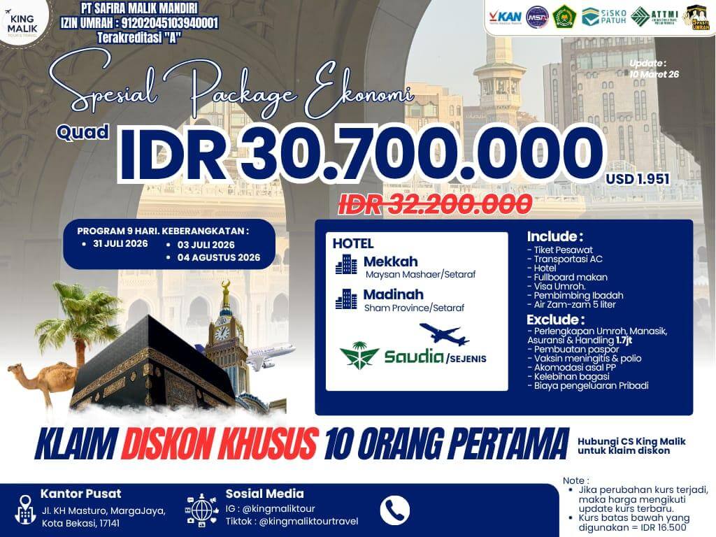 SPESIAL PACKAGE EKONOMI UMRAH 9D SAUDIA LIBURAN SEKOLAH