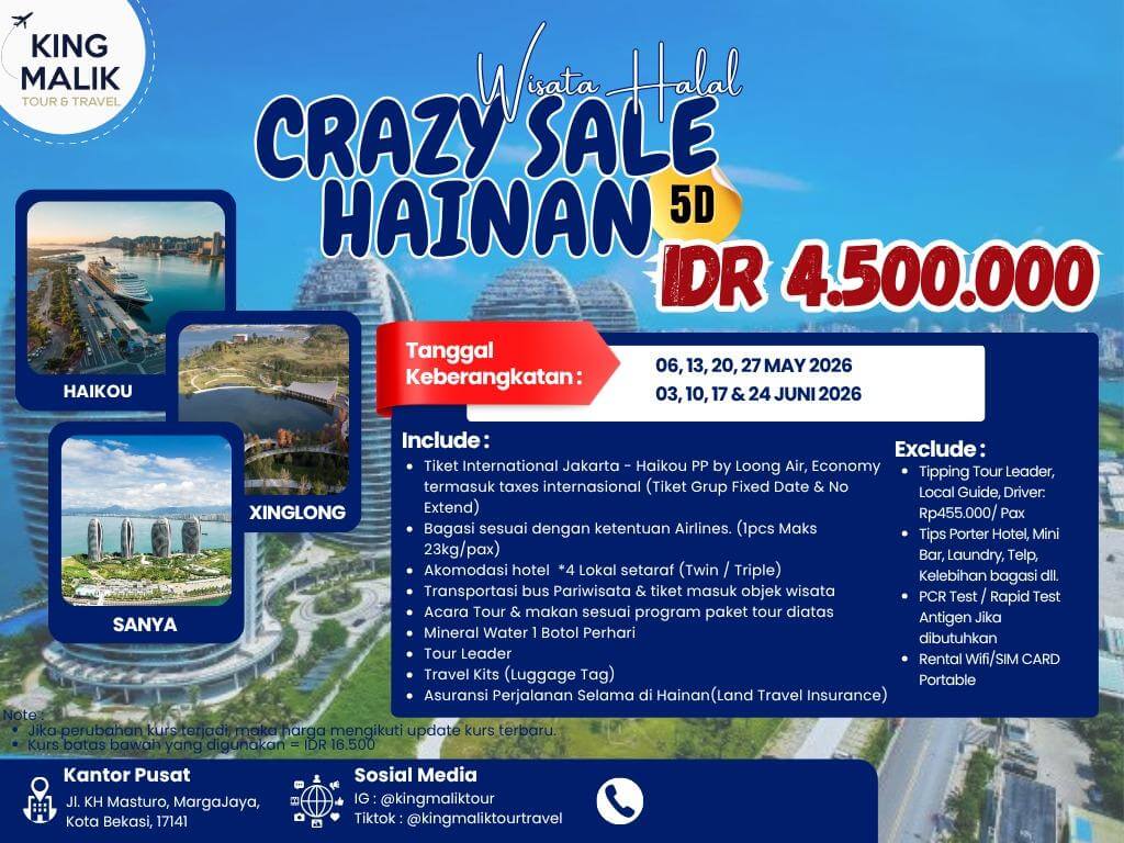- Tiket International Jakarta - Haikou PP by Loong Air, Economy termasuk taxes internasional (Tiket Grup Fixed Date & No Extend)
